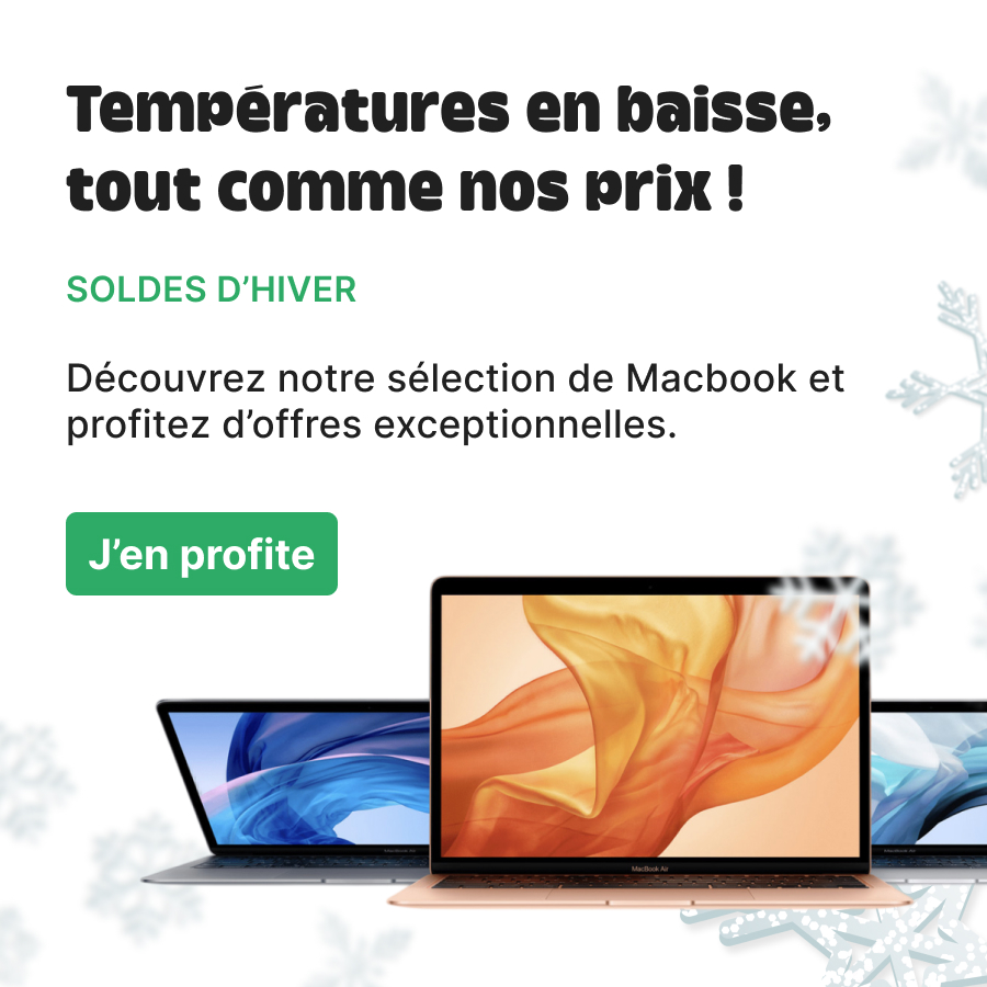 C’est le moment idéal pour s’équiper d’un MacBook Apple à prix réduit. Pendant les soldes, profitez d’offres exceptionnelles sur une sélection de MacBook Air et MacBook Pro reconditionnés, testés, certifiés et garantis. Puissance, fiabilité et économies : choisissez le modèle qui vous convient parmi les meilleures offres du moment.